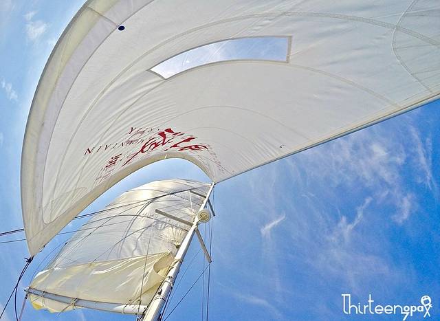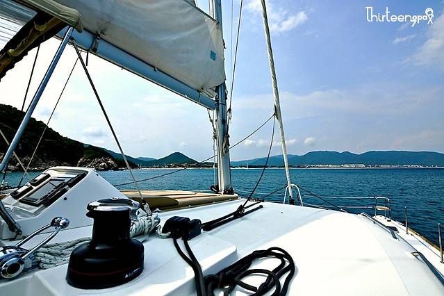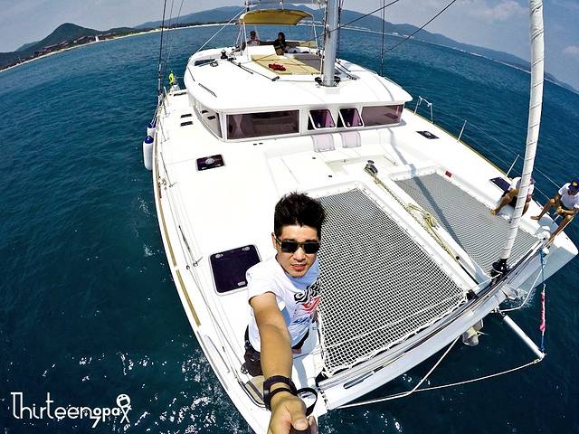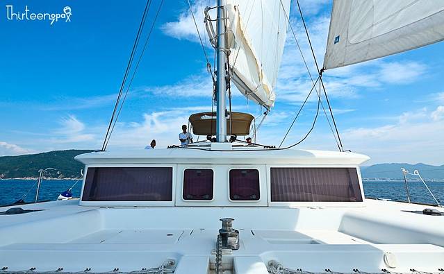 第一眼看到"凡尔纳"号~ 其实和我想象中的游艇不太一样~ 我想象的游艇是那样的 对就是你想的那样的~~ 后来和大总管智霖聊了聊才得知 我们这个其实是帆船游艇 就是可以以油作为动力 又能通过风力作为动力!简单的理解就是汽车中的混合动力!其实是帆船的一种!而帆船又分为单体和双体的 凡尔纳号是双体的 看图就是左边一个舱右边一个舱 这样的帆船稳定性强 行驶平稳 适合我这样的休闲度假。