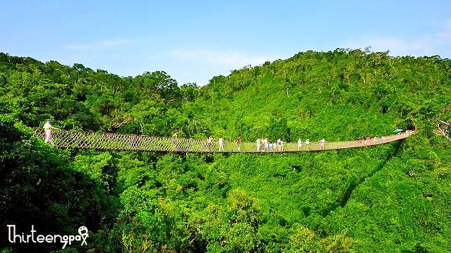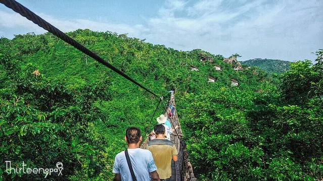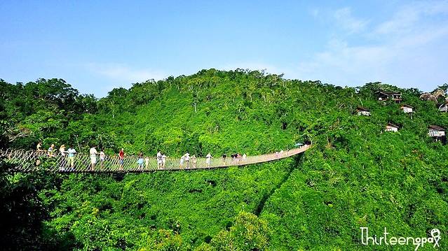 这是连接两个山谷之间的过江龙索桥 只是底下没有江 只有树。