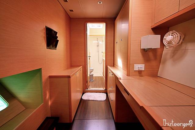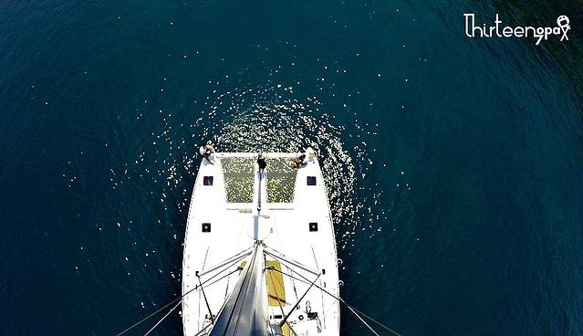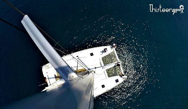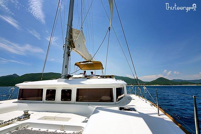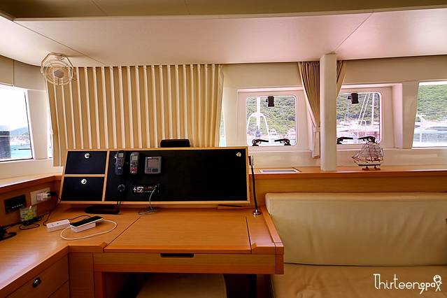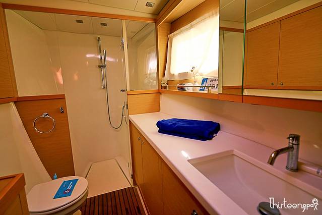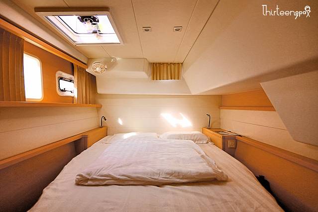 这就是陪了我们4天凡尔纳号~ 一艘法国的豪华双体帆船游艇 带三间五星级设施的标准客房 厨房 以及独立卫生间 可以入住6人 并且满足10人一起出海。因为新鲜感的原因 第一天我们就住在了船上 还是平生第一次晚上睡在海上漂。