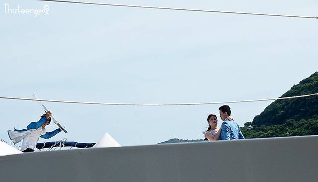 游艇旁边有很多拍婚纱照的 他们很敬业从早上一直拍到晚上 顶着大太阳拍啊拍一天!其实不光拍照的累 新人看着也都很累~ 摆出各种僵硬的狰狞的姿势 一天下来至少能减5斤!什么能减5斤?那第二天在拍一组吧~~~瞧瞧 瞧瞧这婚纱摄影的营销多牛逼!