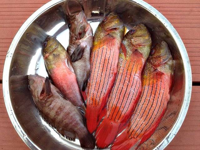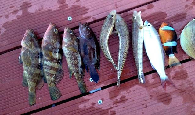 这是今天的一部分战果 尼莫左边长的平凡的 都可以吃~~ 但最后河马仁慈大发 就都给放生了~~ 准备等明天再钓新鲜的 然后明天晚上大总管做私房鱼汤!
