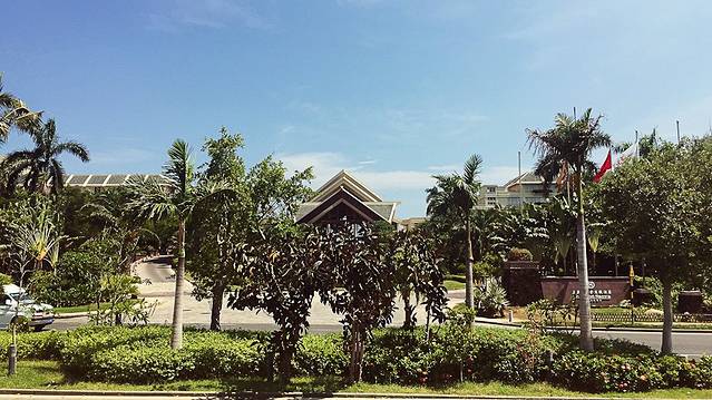 站在观景台可以看到整个亚龙湾 海边那一溜的楼就是各大牛逼的酒店 都在这里了!我们住的别墅就在左上角的海湾处。