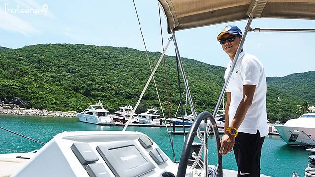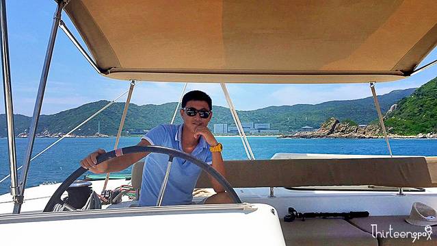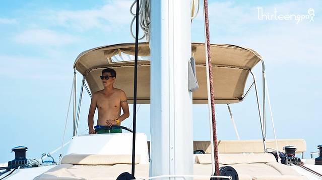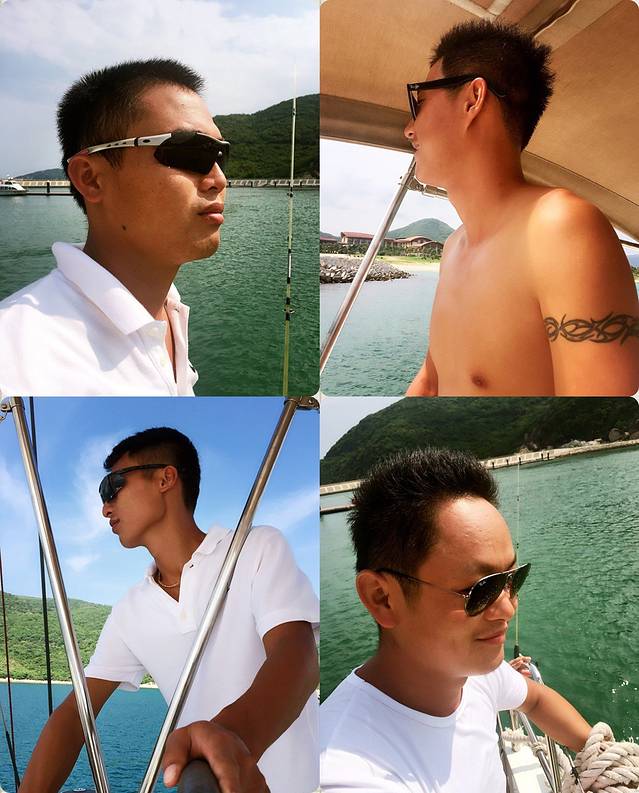 这次花爺的度假区别以往之和河马两个人的行走~ 而是多了4位船长!照片上是其中一位 “朱冠希”因为有的角度很像冠希哥。 后来当无所不能的花爺第一次亲眼看到心爱的游艇时 乱了 乱了!离合在哪 油门 刹车在哪里?一下子就乱了~~心想有油门一定是在二层!哼!
