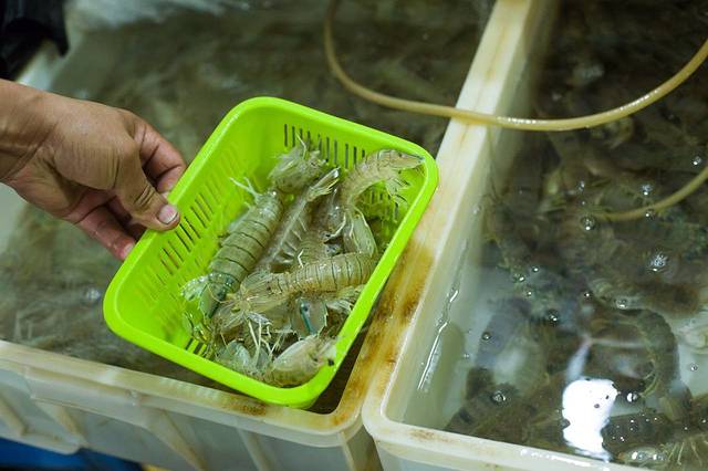 来到三亚一定要吃海鲜的~ 最后峰爷带着我们 叫上了大总管还有冠希去他们经常去的一家馆子去吃海鲜大餐 海鲜店的小妹带着我们亲自去买 有幸看到了第一市场里的各种长的奇葩海鲜~ 最后还是规规矩矩的选了几样常见的皮皮虾 龙虾 螃蟹 花蛤~~~