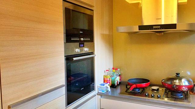 厨房 灶台 烤箱 电磁炉 微波炉 有你想要的一切! 下面的柜子就是一个大冰箱~~ 整个一艘船有3个大冰箱~
