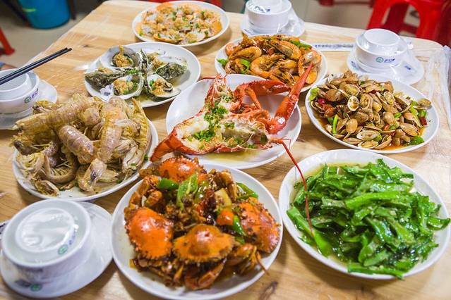 这就是峰爺极力推荐的小胡子海鲜 他们是这里的常客~ 我们买完海鲜回来门口好多人 还担心没地方坐 原来小胡子家二楼三楼都可以坐 在二楼坐下 等了没一会 还没和大总管聊尽兴 刚才买的海鲜就都做好了上来~~~