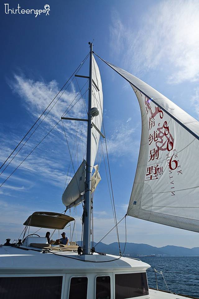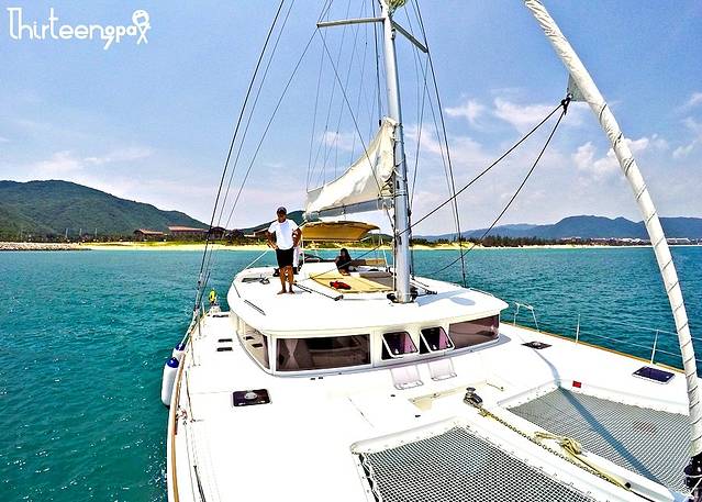 帆船的好处就是 即使不用油也能通过风力来控制帆船的动力! 环保! 船帆上眨眼的西山渡其是在亚龙湾上的一个高端别墅私人会所~ 也是悦航海的私人制定的设施之一 今天我们就不住船上了 中午饭后 我们就去别墅了 今晚整个别墅就是我们的啦~~~