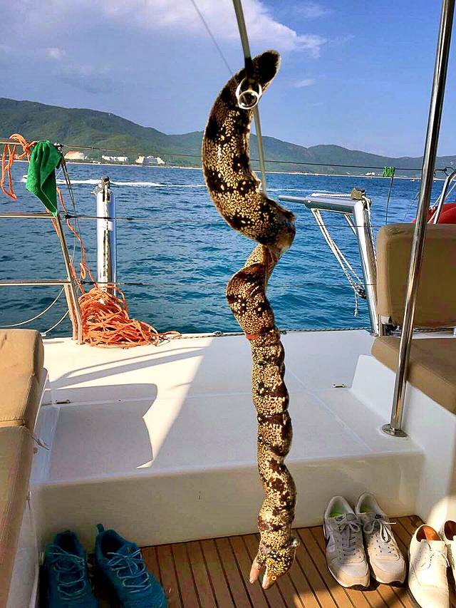 起帆升锚 耍了一上午了 在4位船长的陪同出海下 非常开心~ 相当的开心!惊喜不断! 我们都是一代人 没有代沟 玩的很开 如果说昨天我们彼此都还有一丝内敛 但互相了解后 原来发现都是一类人啊 啊哈哈哈!另外 船长们的跳海绝活 让我们目瞪口呆!花爺的鳗鱼 河马的尼莫虽然放生了 但依然期待船长明晚的私房鱼汤!