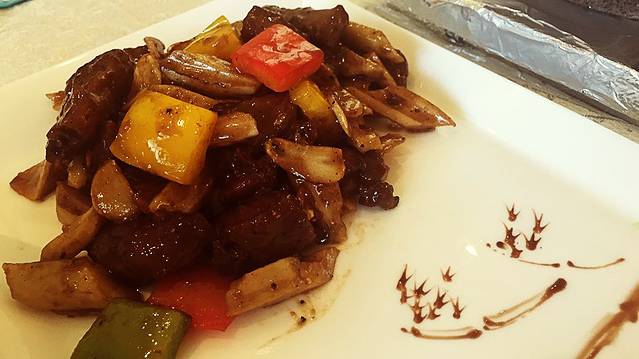 临近中午 文导说带我们吃牛肉面去 是宁夏人开的 用的牛羊肉都是宁夏本地羊 味道很好~ 而且就在免税店外面不远~~