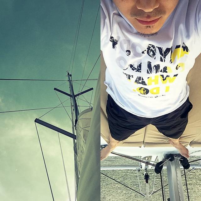 帅气的锋爷升帆 船大步向前进~~~ 锋爷这一身黑黝黝的皮肤 羡慕死我了~!! 我是每年都特意去晒黑 但过了夏天冬天一捂就又嫩回去了~!难为死我了!锋爷说来三亚 半个月 肯定就和他一样了~~