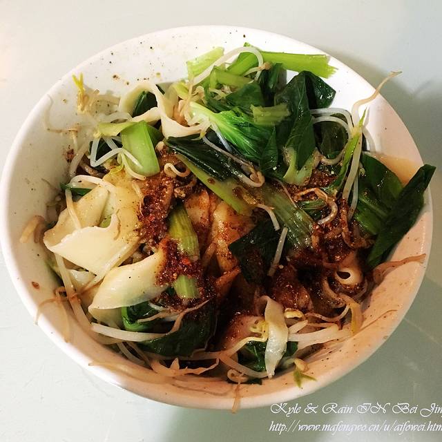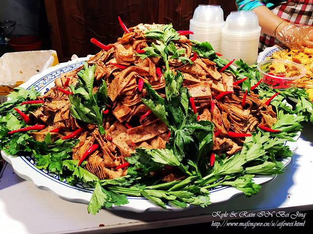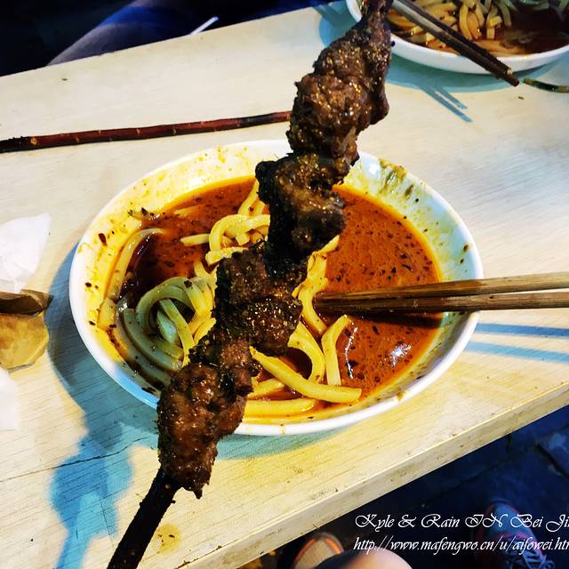 老毛带我吃了这里他觉得不错的凉皮,然而我真心觉得这才是地道的凉面,跟我平常在广东吃的面和调料的味道完全不一样,第一口感觉不好了,可是,我又不能不给面给老毛不,哧溜哧溜得吃了好多,越吃越有味。老毛坐边上看着我吃,还帮我去烤了一串红柳枝烤串,肥得流油,好几块压根嚼不动,又吐了出来~~~可能是我真吃不习惯这种烤法,哈哈,无爱了!
