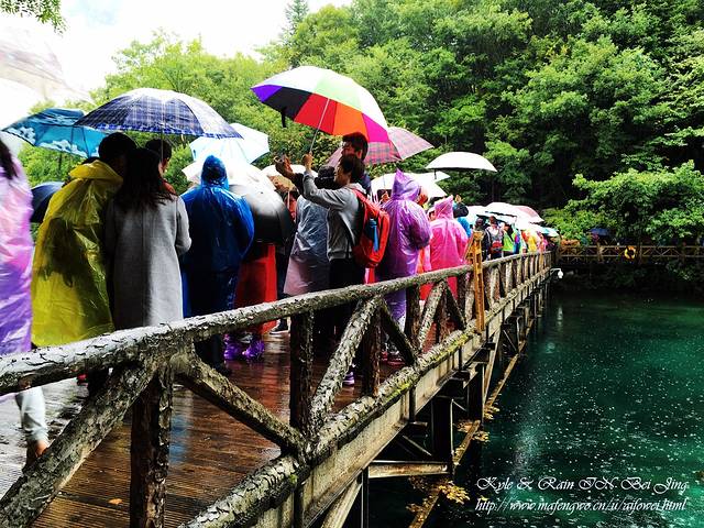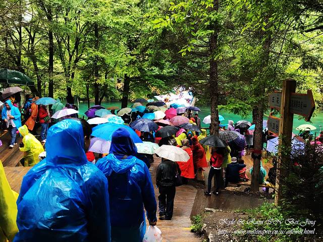旅行天气真的很重要,以前我们总能遇见好天气。果不其然,花光所有运气了,游玩九寨沟前一天、后一天的天气都是最佳,然而我们游玩当天却是大雨倾盆,湿漉漉。