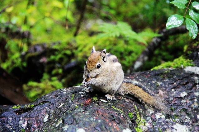 超级萌的,果然是原始森林~~有各种小动物,还有好多鸟呢!小松鼠和小鸟还一起抢食物吃~~