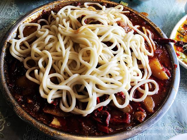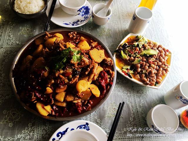 办理完入住,到房间里放下行李。两人轻装出门出去觅食,中饭都还没吃。饿死了,嘴比较叼,想吃鸡肉好几天了,一直没吃到。又掏出大众点评,搜到乡村大盘鸡,于是两人跟着导航走啊走啊走啊,走了好远路都找到这个地方。
