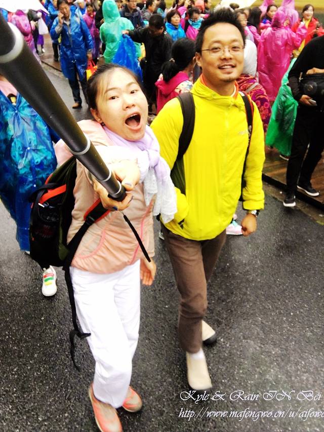 从观光车下车之后,就如同拥挤在人潮中随波逐流~~想要来一个简单的合照,背景全是密密麻麻的小人儿~哈哈哈,穿得五颜六色的雨衣