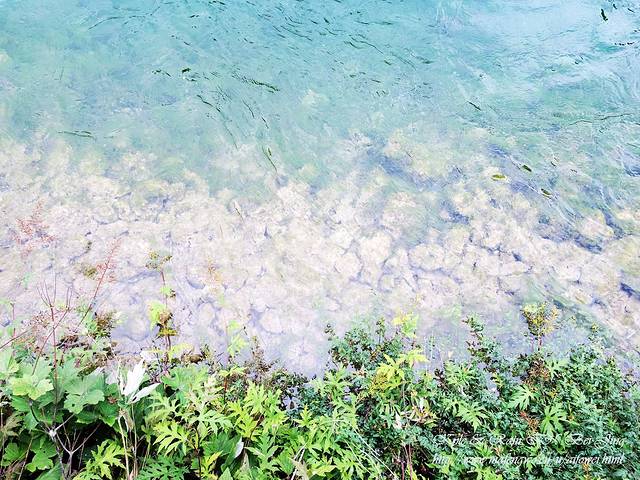 五花海的底部景观妙不可言,湖水一边是翠绿色的,一边是湖绿色的,湖底的枯树由于钙化,变成一丛丛灿烂的珊瑚,在阳光的照射下,五光十色,非常迷人。