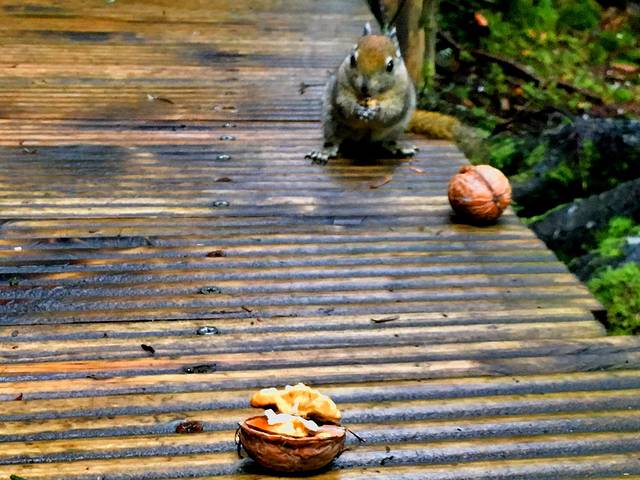 我们走着走着,突然我感觉自己看到了老鼠从我脚步蹿过去,大声地尖叫了起来。结果,旁边的行人说那是小松鼠,我走近一看还真的是野生的小松鼠,吸引来一大片举着手机、相机在追着她跑一直在咔嚓咔嚓,开始她还是挺怕人的,后来走着走着,有行人给她喂核桃吃,我们都还以为她不会吃呢,她两只小手抱住大大的核桃立马啃起来了,一下子我觉得她侮辱了我的智商哈哈哈,超级可爱的。因为她我们在那里耽误了好长时间,直到阶梯上就剩下我和老毛两个人,老毛还一直催我,别拍了别拍了,人都走光了,在这里别耽误太长时间。