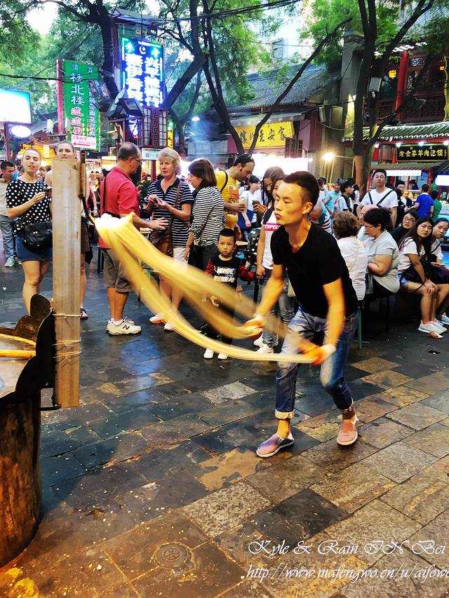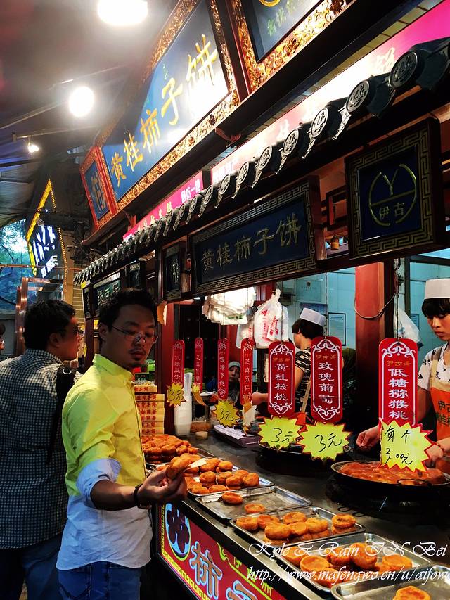 傍晚夜色还没有降临,但是人太多了吧!反正那天晚上兜兜转转我们走了好多条街,全是卖吃的!!果然是中国小吃街排名第一~~~~太大太壮观了