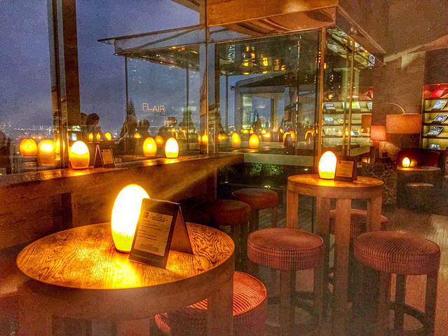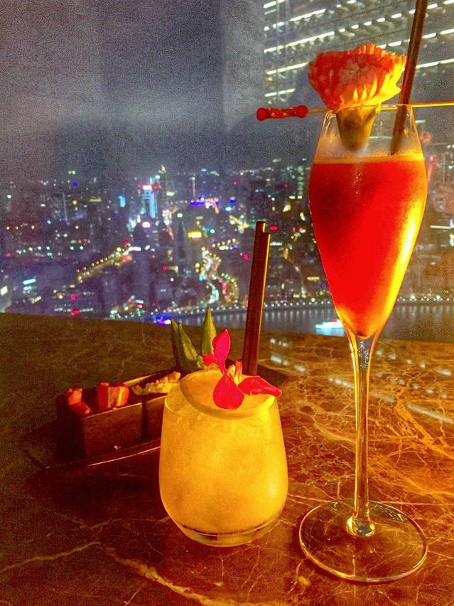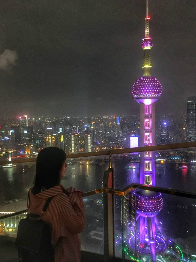对丽思有着特殊的情节,此次旅行后更是~这里的Flair酒吧,据说是全国最高的露天餐厅酒吧,一座难求~五点半开餐,五点就过来排队,前面已经有好几桌在等~服务员非常nice地为每组客人安排最合适的座位,不愧是7星级酒店的服务~(PS。又被质疑是否已满18岁,我是不是该开心一下?)虽然没能坐在露天座位,但还好分到了一个视野极佳又具私密性的位置~之前对这里有过无数种遐想,但真正来到这儿之后,眼前所见推翻了一切狭隘的想象~悠扬的钢琴曲、摇曳的暖黄色灯光、微凉的晚风、俯瞰外滩的阑珊夜景……只能用美醉了来形容,一切言语和照片都无法表达身临其境的陶醉之意~点了两杯酒,#云端#和#绚彩缤纷#,在美景的映衬下,显得格外诱人~喝完酒,我们到露台观景。再无他处,能抵得过此情此景的浪漫~在如此美妙的地方,收藏了如外滩灯火般闪亮的回忆……