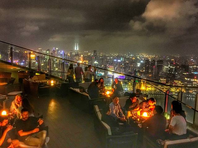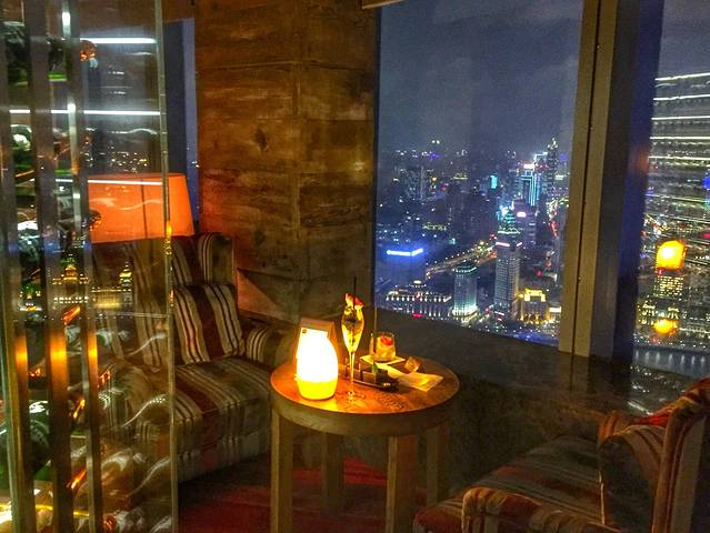 早有耳闻,英迪格酒吧的风景同样超赞,于是在这一天接近尾声时特此来感受一下,作为华丽丽的收尾~大堂的装潢很有历史感,而到了Char酒吧之后,却完全是另外一番景象,瞬间体会到“夜上海”的含义~从风格上说,算是偏向“闹吧”的类型~每人100元门票,可以随意挑选一款饮品~只是种类很少,而且都很简易~所以值回票价的关键,是独一无二的风景~很幸运,赶上了露台靠边的一个好位置~在这里,能把东方明珠塔和“厨房三宝”尽收眼底,配合着动感时尚的背景音乐和中英文交杂的喧闹谈笑,完全体会到了“魔都”二字的魅力~