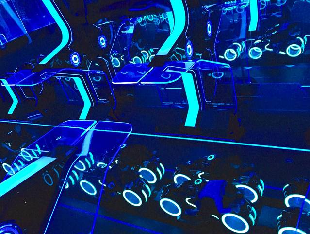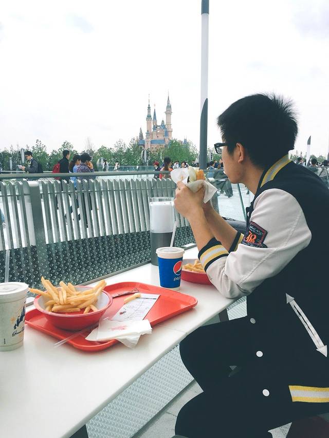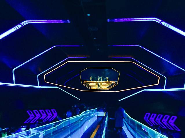 浓厚的科技感和现代感,搭配着耀眼的金属色,反射出一种神奇的光晕,真的仿佛置身于明日世界一般~#创极速光轮#和男票一致认为,不仅是明日世界,甚至是整个乐园最值得一玩的项目~从没坐过一个过山车,像拍了一场美国大片儿一般刺激~坐上极速摩托,穿梭于光影交错的未来世界,也只有迪士尼能给我们这种酷炫至极的体验~从项目出来后,来到了一个雪佛兰赞助的未来世界主题展厅。科幻感十足的氛围,各种高科技元素淋漓尽致地体现,仿佛看到了几百年后的世界~这个展厅,绝对值得好好体验~午餐在这里的#星露台#餐厅解决,汉堡薯条的快餐,和露台的惬意风景是绝配~