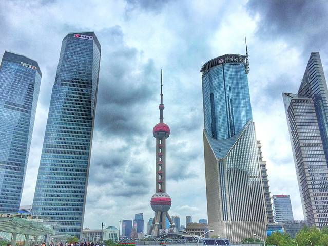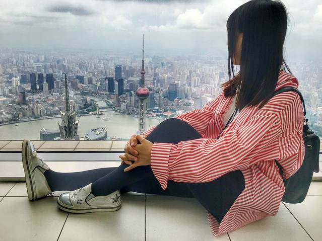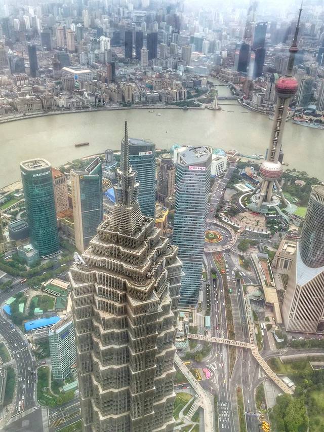 天色微阴,云团袭来,衬着远处一幢幢恨不得把天捅破的高楼,像极了《小时代》里面的画面~在上海中心正式对外开放前,环球金融中心是打败金茂、东方明珠塔的最高建筑~于是乎,我们选择了这里作为高空观光的景点~好像已形成习惯,每到一个城市,都偏要到它的最高点去看看~明知道也许雾霾或阴天会影响风景,或是在哪里看到的景象都大同小异,但还是要有这项“仪式”,仿佛登顶鸟瞰的一瞬,就将这座城市全部印在心底~