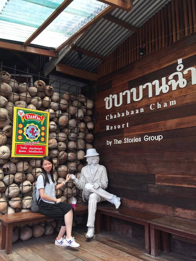 路过一家很奢华的餐厅….金光闪闪的格调与这淳朴的市场有些许的不搭….里面的侍应都穿着泰国传统服饰….本来以为会很贵的一个餐厅….在门口看了菜牌后我们果断走了进去坐下了…..因为是中午,还没有太多人…..我们竟然包场了…..这里的饭和饮料都超棒的….泰味很正宗…..椰子冰也很好很好喝…..最重要的是侍应从点菜到后面我们离开都是热情不减….满满的幸福感….