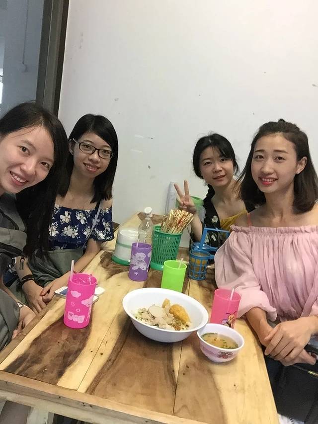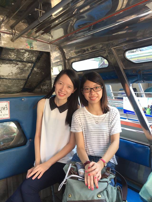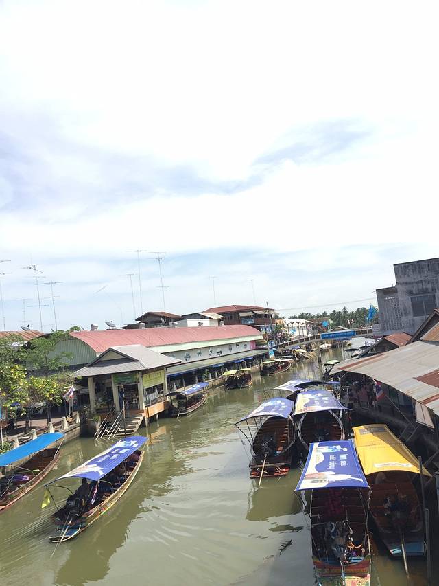 饭后,我们开启了左边市场的探索…..在这里,你会发现有很多小店…..有买小饰品的…..有买特色小吃的…..有买服饰的…..甚至还有做massage的…..对于这里的小吃,表示还是没勇气尝试…..其实觉得比较有意思的是商贩们在船上做着各种美味的小吃….客人们在岸边美美吃东西的场景…..闲逛中….遇到一群可爱的泰国少女….尽管无法交流我们还是很有爱的来了一张自拍….想说她们真的很上镜….青春的感觉真美…..