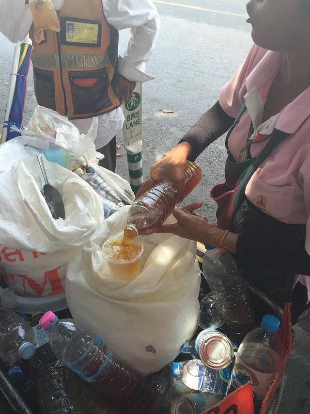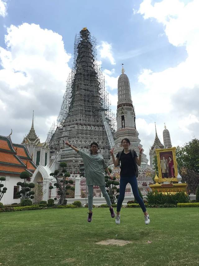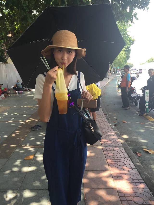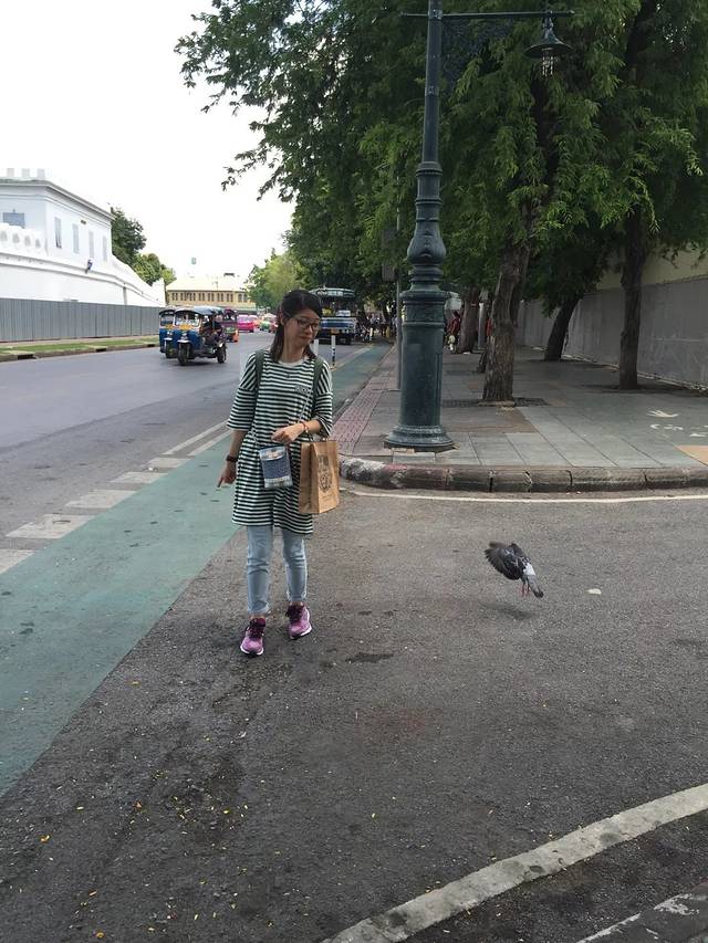 这捆绑的3个景点分散得确实有点散….对于我们这几个路痴来讲找起来也很难….行走在大皇宫外面的街道….被各式Thai color buses吸引到….复古又嘻哈….很喜欢他们这种多彩的文化…..随处可见随意又傲娇的鸽子….偷偷蹭着它们拍几张照还是被发现…..拍起翅膀说飞就飞…..有爱啦…..路上有遇到卖水果汁的小摊…..一车袋的冰沙和各种用矿泉水瓶子装的果汁….颜色正如多彩曼谷一样….有点炫…..个人感觉有点脏…..但是很多本地人都会停下来尝上一杯…..一行的花花还是买上了一杯mango juice….整个果汁的变装过程让我瞬间傻眼…..听说真的很好喝…..我只能说,真的么?