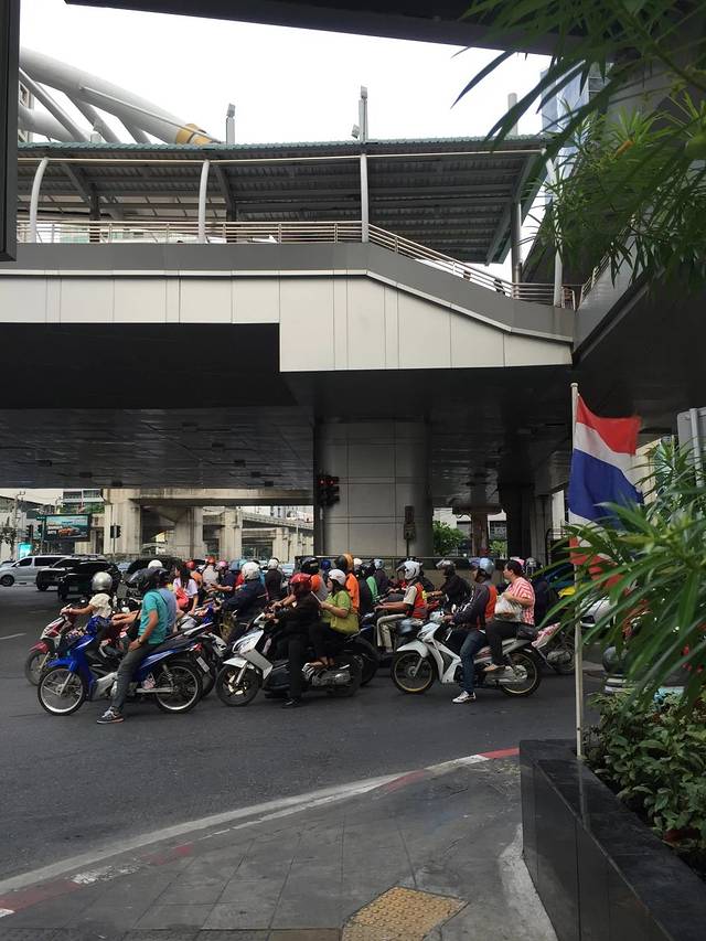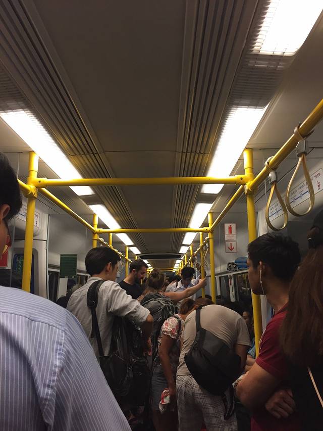早上六点的泰国已经过分热闹…..除了在机场站上地铁的比较少人外…..后面的每个站都站满了准备上班上课的泰国人…..对于这个钟数的这种景象…..我们都有点懵逼…..坐到终点站我们才会下车….尽管很犯困….还是压抑不住第一次出国的兴奋感….忍不住瞄瞄旁边的人….瞄瞄窗外的风景…..那时候的感受:各种颜色…..好多彩的曼谷….