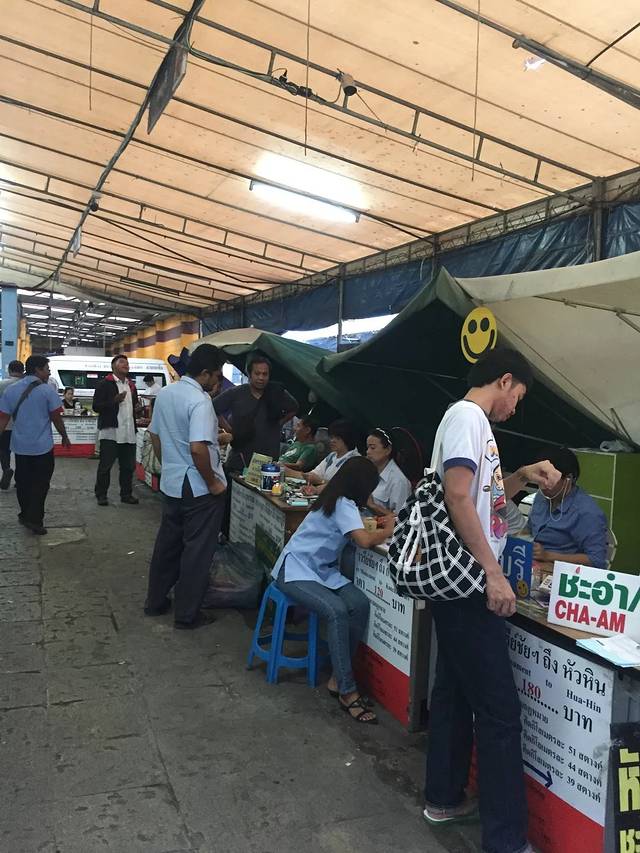 Victory Mounment的4号出口出来….我们找到了去华欣的售票处…..这里地方不大,但都停满了Mini Van….然后售票的地方就是摆着几张长桌,旁边就坐着买票的人而已….感觉就像国内的野鸡车售票处…..特别让人忐忑…..其实泰国人并不是很会英语,我们又不会泰文…..买票的时候有点不知所措….幸好body language还是十分有用,果然是国际交流最好的方式了…..