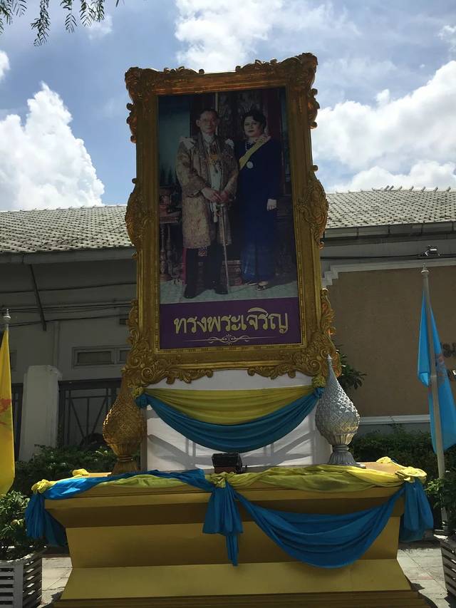 吃完饭已经是下午17点…..暴晒后的曼谷有点要下雨的节奏…..想说晚上还是要感受一下曼谷的夜生活…..一行四人开始寻找Siam广场…..还是懵逼各种兜……走了一个多小时还是没有找到…..还兜到了曼谷当地的殡仪馆…..如果不是见到有花圈和穿着丧服的人们…..还真的不知道以为是神庙…..因为曼谷这里的很多建筑都是神庙造型…..就连学校也是挂着泰国皇室那些贵族的头像…..对于我们来说确实有点难以接受…..就是怪怪的感觉…..