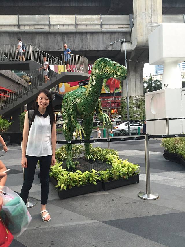 因为是周四….在不远处的水上市场并没有开…..我们只好坐车回曼谷…..回到市区的我们…..在Siam站出,很快来到了Siam Discovery….这里应该是整个曼谷最潮最top的一个创意商场…..门口是创意大摆件……一楼到三楼是潮牌商品…..上面楼层是吃货天堂….反正钱不用花太多就能各种吃….环境也很棒….最爱它这里的厕所….爱上它里面的文字, 自己的心声哟…