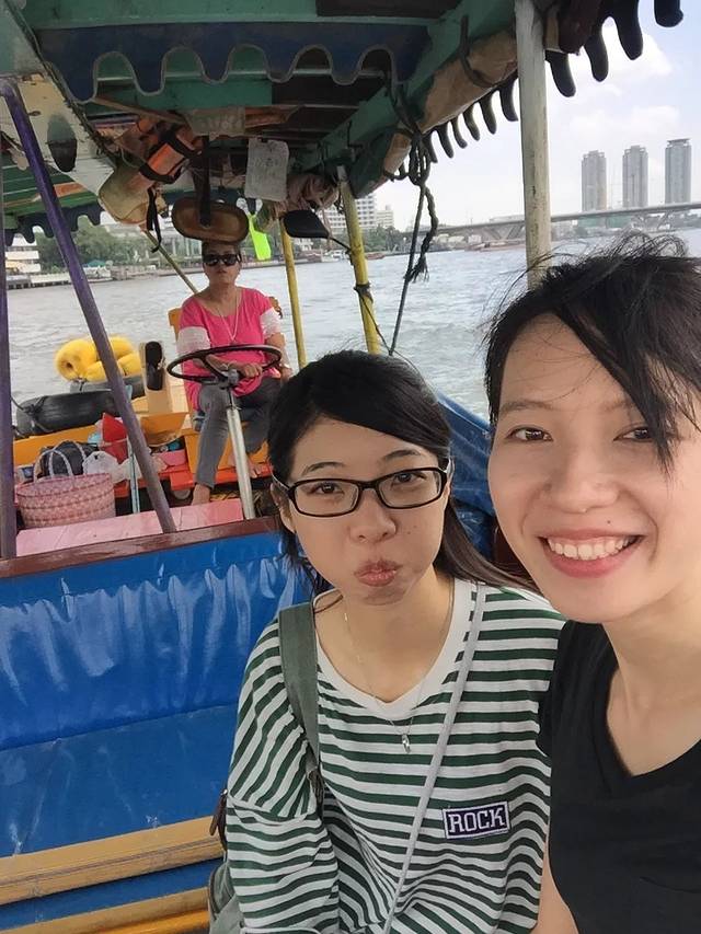 我们四个聚在一起后已经是中午12点多了….为了节省时间,所以我们直接从酒店打车去到了湄南河的乘船码头…..听旅舍的小伙子说,乘船去大皇宫是个不错的选择….买了四人票,刚开始的时候要2500泰铢…..后面我们都以学生很穷的姿态讨价还价压到了2000泰铢….其实应该可以再便宜一点….因为在泰国,讨价还价真的是很正常的事情….毕竟旅游胜地,借着语言不通的优势…..本地人多少会有点小坑…..