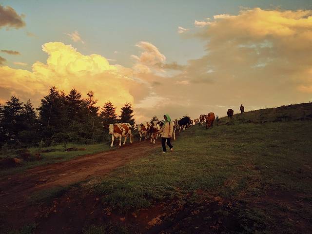 桦皮岭景区在东线东口1公里处,草原天路全程没有费用的,此处景区收费50元/人,建议可去可不去。里面一条长道约300米,之后左边有一个滑草,一个大蒙古包里可就餐,饭菜不贵115元/4人(尖椒肉片,家常豆腐,土豆丝,炒西南花)。午餐休息后往上走(进来右边)约100米山上有一片白桦林。如果再往上走到山顶,在山的那边据说有很漂亮的梯田,可惜这次快到山顶打了退堂鼓,没爬到山顶,是一个遗憾!