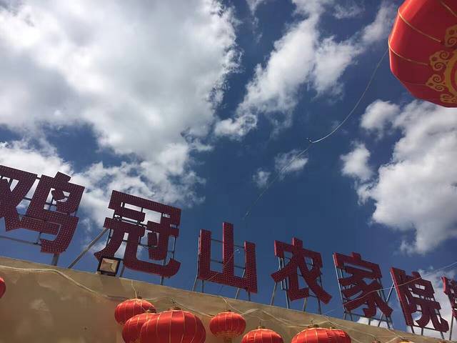右转后约200米在路的左手边见到这样的标志,左转进入草原天路,前行8公里就是鸡冠山家家院的所在地(在右手边)。