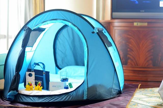 到达房间后,儿子欣喜地发现了伫立在睡房里的露营帐篷,内已备好全套原野探险装备:LED手电筒、指南针、水瓶、特制手挽袋和儿童拖鞋,儿子忍不住惊叹:“哇哇,这简直是我住过最漂亮最好玩的房间啦!”对于这种别出心裁又富有童心的创意我打100分~