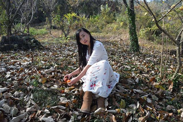 踏着石来运转拾阶而上,来到一片叶已落尽,枝头挂满果实的柿子林,我更喜欢地上因熟透掉落下来的柿子,看起来更透红,点缀在一片枯叶中,让一片凄凉的凋落变得有了生机。