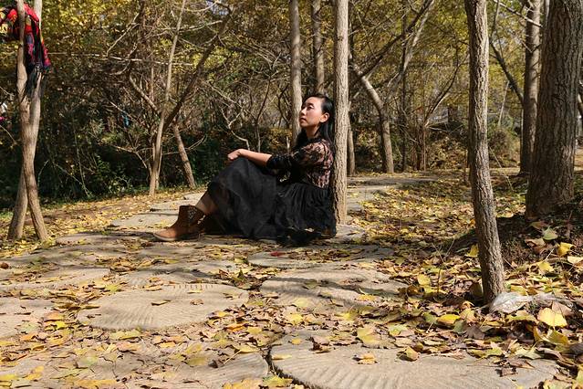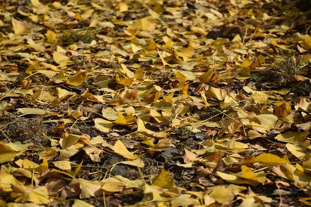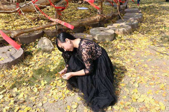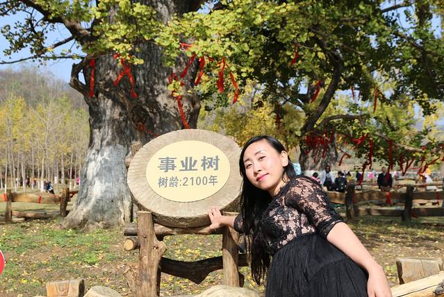 是个好天气,一出门便见到暖暖的晨曦穿过薄薄的雾,将十一月的早上照成一片浅橙色。这个季节、这种天气正是观赏银杏叶的最佳时候,百分之八十的树叶已褪去了绿色,染上了金黄,地上铺满了一层叶子,树上也还依然枝繁叶茂,满眼尽现黄金甲,确实美的惊艳。来早了便没了这份艳丽,来晚了树上叶子又会所剩无几,正因为是最好的时节,所以虽非节假日,景区里却仍是人头攒动。但120平方公里偌大的一个林子,再多人也不防碍去找一块无人的地儿坐在树叶铺满的软地垫上晒会儿太阳。