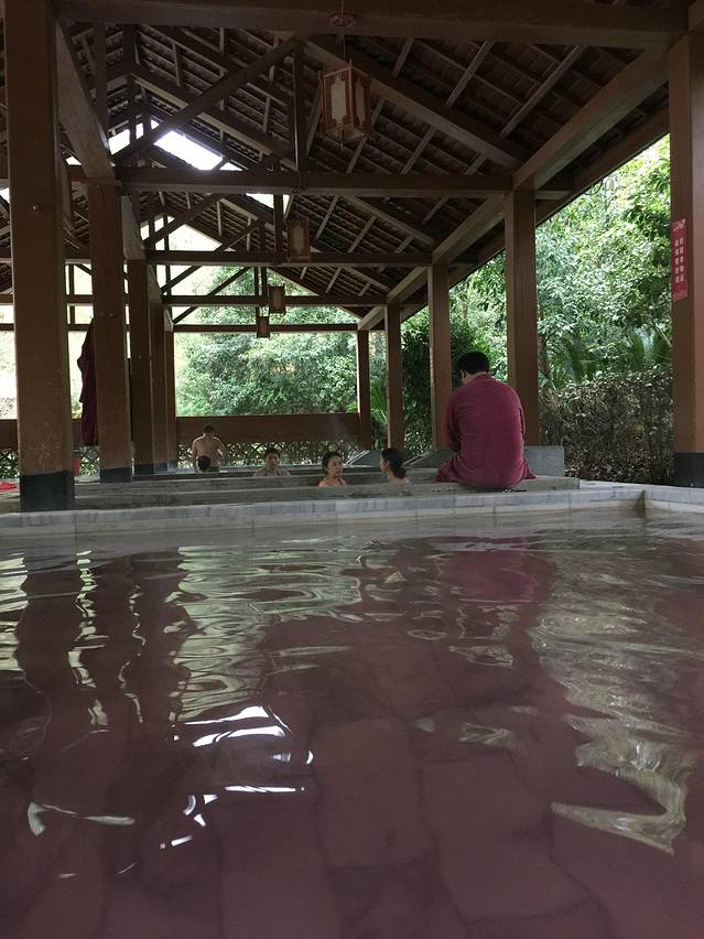 从宜昌到汤池温泉全程二百多公里,非节非假,高速一路畅通,两个半小时便能到达目的地。从前台到更衣室到温泉池再到休息室,最直接的感受就是服务都很热情,即使场地里碰到的在池中捞落叶的大伯,也都用蹩脚的普通话热情的回答你的问题。