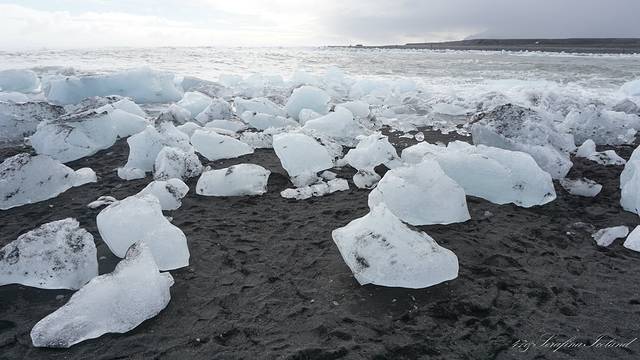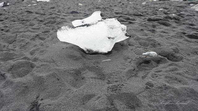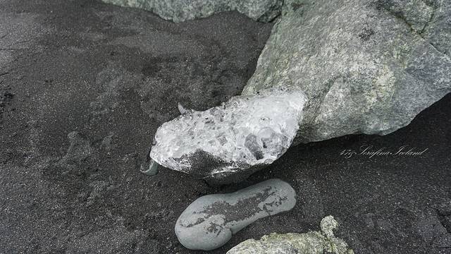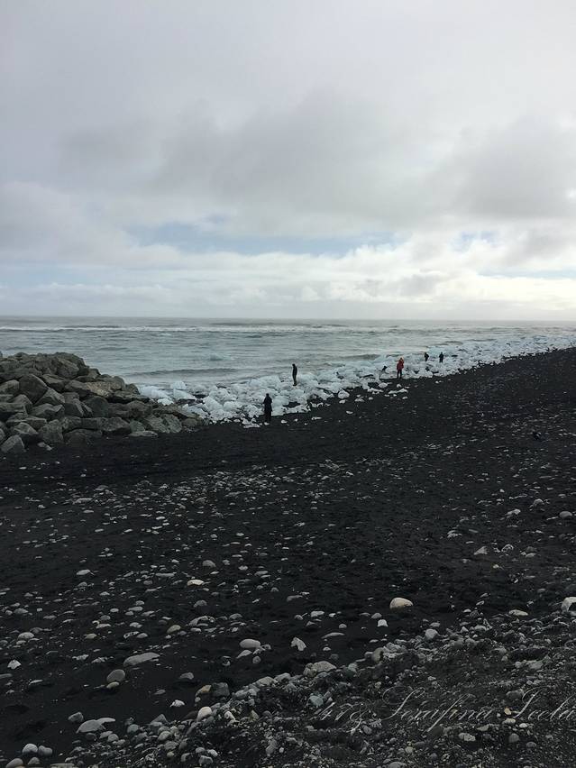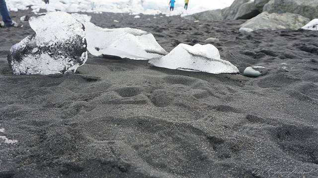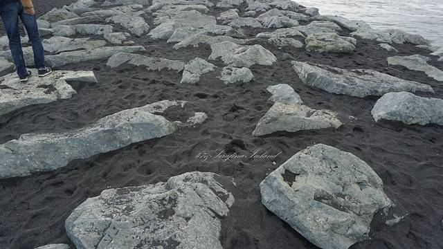 冰岛所有的沙子都是黑色的,是跟火山灰有关系,钻石冰沙滩就位于杰古沙龙冰河湖的对面。冰块像水晶一样晶莹剔透,色彩又使它散发出钻石一样的光芒。所以叫做钻石冰沙滩。