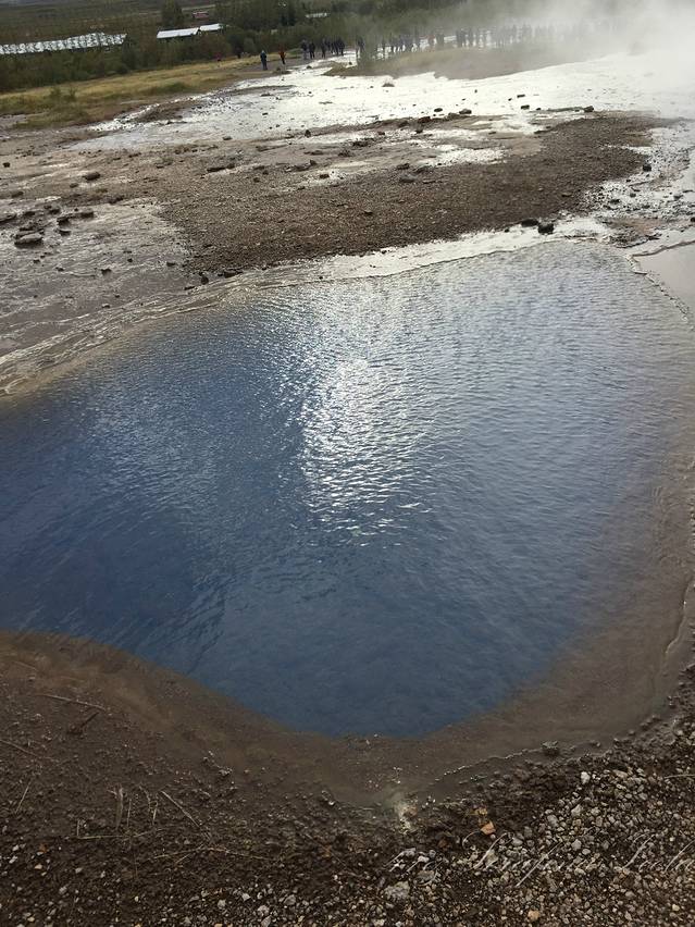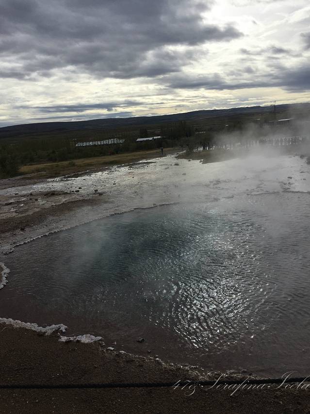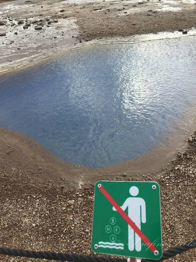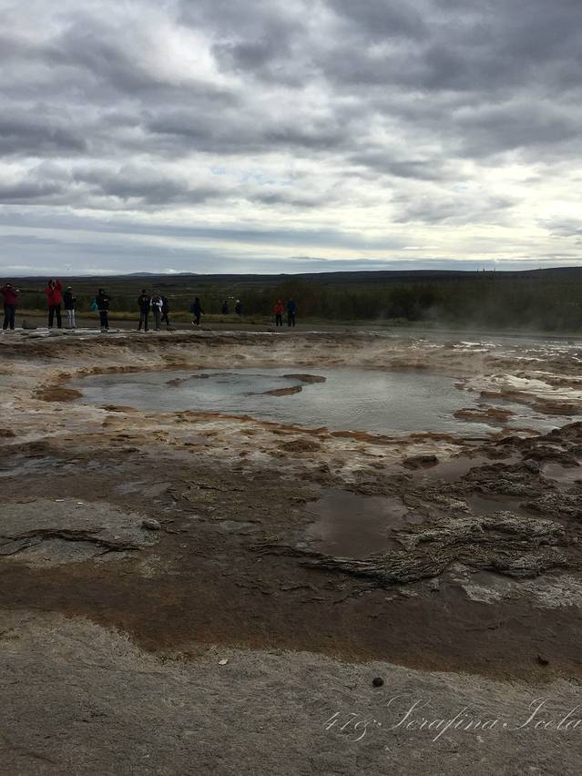 盖歇尔间歇泉距离Thingviller Nathional Park差不多41公里,园区最有名的一口泉,great geysir。geysir就是冰岛语中间歇泉的名字,这个园区也以此命名。目前仍在活跃的间歇泉,叫Strokkur,每8到10分钟喷发一次,最高到35米。