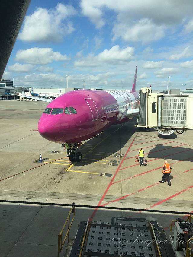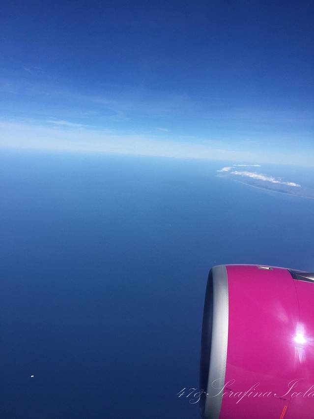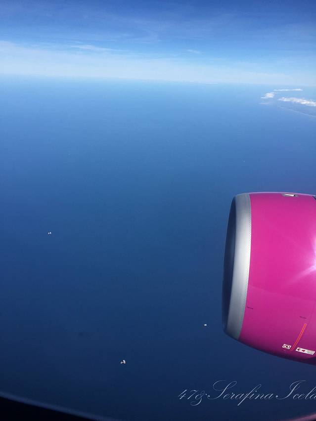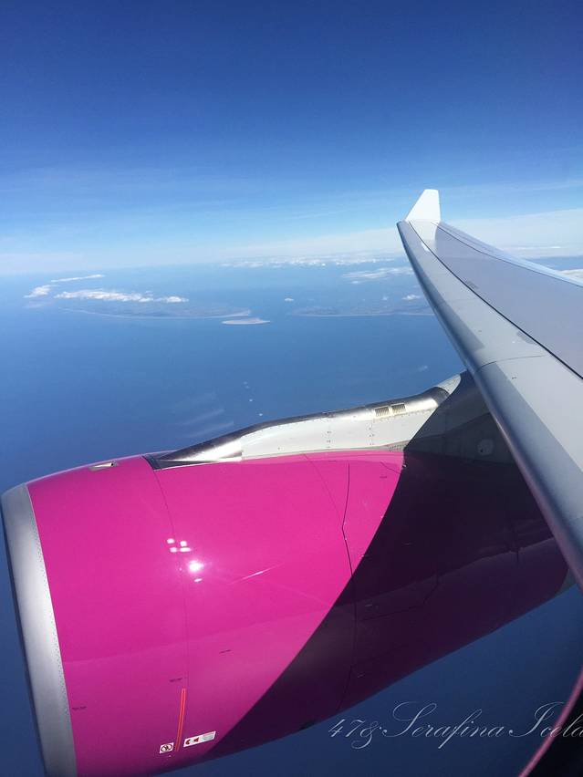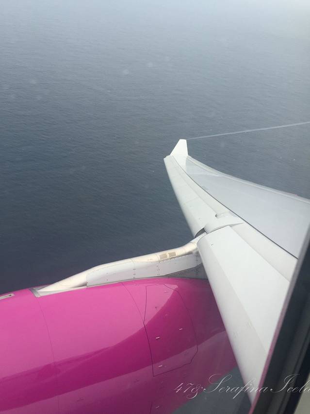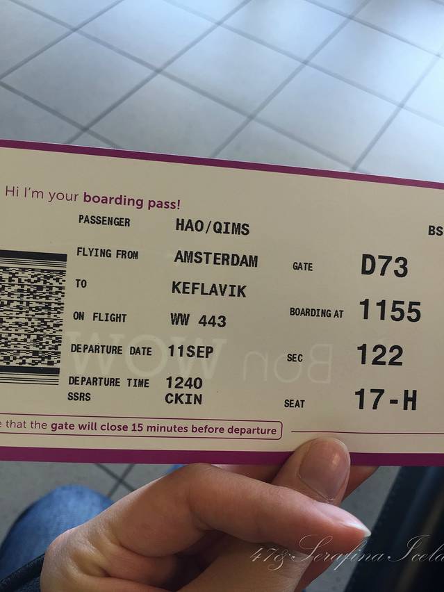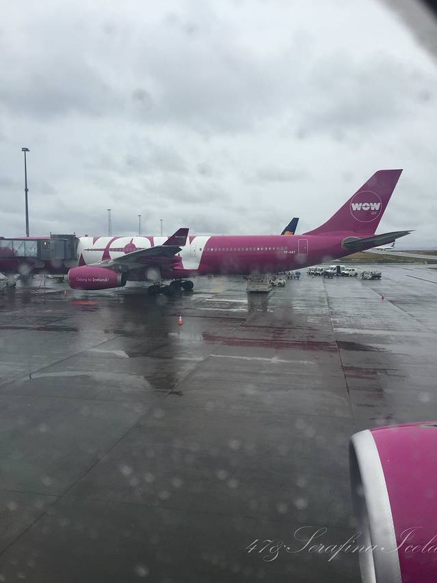 我们是从荷兰阿姆斯特丹(关于阿姆斯特丹机场我有很多吐槽,请见欧洲行游记)飞往冰岛首都雷克雅未克的,乘坐的航空公司是WOW air,喷涂是紫色,非常好看,它应该算是飞冰岛的最便宜的航空公司了。因为是廉价航空,买票的时候一定要注意买行李,托运行李 check-in baggage,随身行李carry-on luggage,别搞错了哦。如果没有在网上买行李的话,去机场买会非常非常的贵,甚至比机票价格还贵。