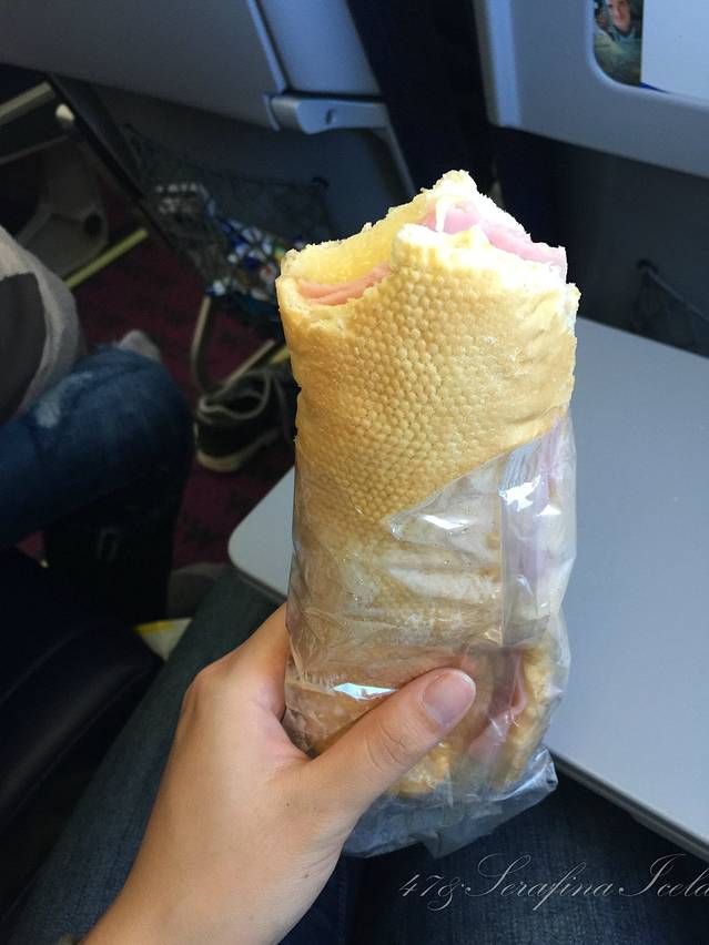 被延误了2个多小时,廉价航空什么都不发,饿的实在受不了,找空姐买了个热狗,50块一个,我们觉得贵成狗了,事实证明在冰岛,这是正常的不算贵