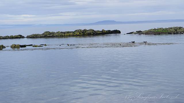看见没,在水里翘着尾巴的那两只就是海豹。