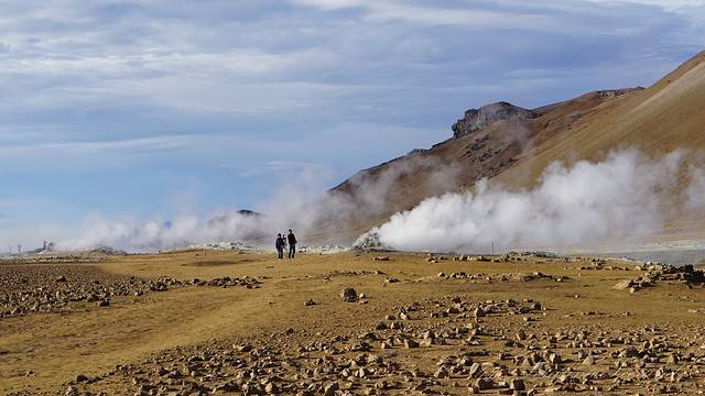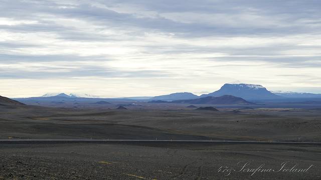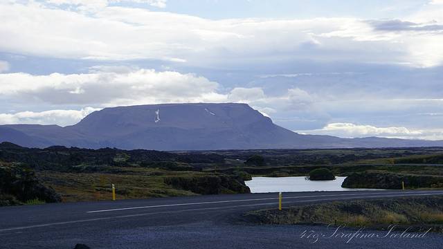 Krafla,卡拉夫拉火山口,位于冰岛中部米湖附近,从雷恰利兹向东北方向的走15公里多就可以抵达火山口的停车场。从停车场往火山口走,可以步行绕火山口一周。火山口直径约10公里,高度818米,曾爆发29次。1975年至1984年是克拉夫拉火山的活跃期,期间有9次火山爆发。目前火山口附近的地热为发电厂提供能源,成为清洁的能源渠道。