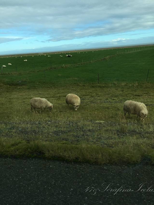 冰岛路边随处可见的都是羊群,羊特别肥,而且会蹲在路边或者窝在山上悠闲地看着过往的车辆,在这做一只羊也挺不错的,呼吸着没有污染的空气,吃着最新鲜的草,喝着山泉水,太幸福了。