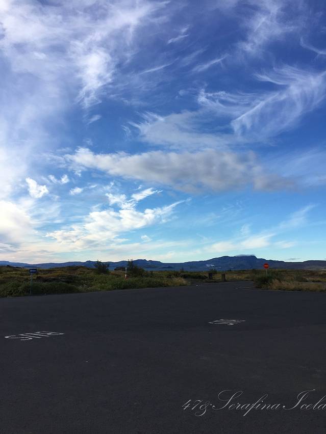 要好好说说我们第一个景点,其实上网看了攻略,几乎没有一个人介绍这个景点的,我们也以为这个景点就是一个古遗址,再加上风特别大,我们也没停留时间太长,但是后来有一天,上网突然发现其实沿着路一直往前走会看到很壮观的裂缝,它是亚欧和美洲板块的分界,地球最美丽的伤疤。裂谷如今仍以2厘米/年的速度分离,古老的火山运动撕开大地,裂缝中形成湖泊河流,清澈碧绿,让游客位置震撼。而冰岛最著名的潜水和浮潜胜地——史费拉(Silfra,又名丝浮拉)就在辛格瓦德拉湖内。这里的湖水非常清澈,能见度可达90-120米,让史费拉成了冷水域潜水全世界排名前三的潜水、浮潜圣地。可是我们就这样错过了,好后悔啊,47说你回去写攻略一定要让其他人去看看那个大裂缝,千万不要像我们这样看看那个会址就走了。