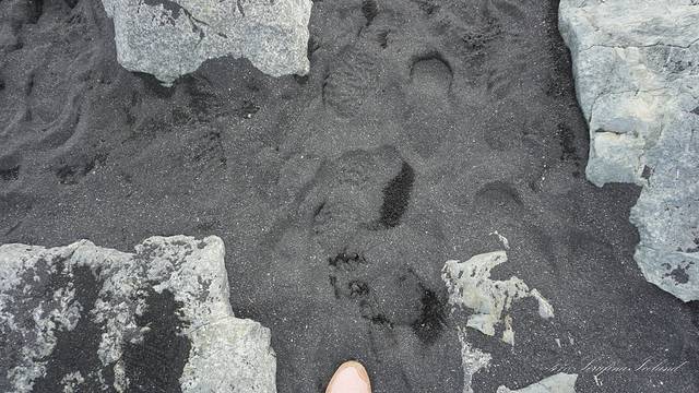 黑沙很细。
