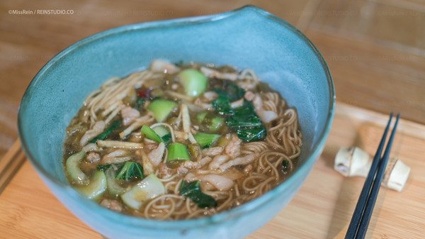 初入冬季,正是呼呼吃面的好季节。板油晶莹的面条(双击放大看)肉丝要夹精夹肥,笋丝要新鲜,小青菜打过霜,再来一点小辣椒,完美。